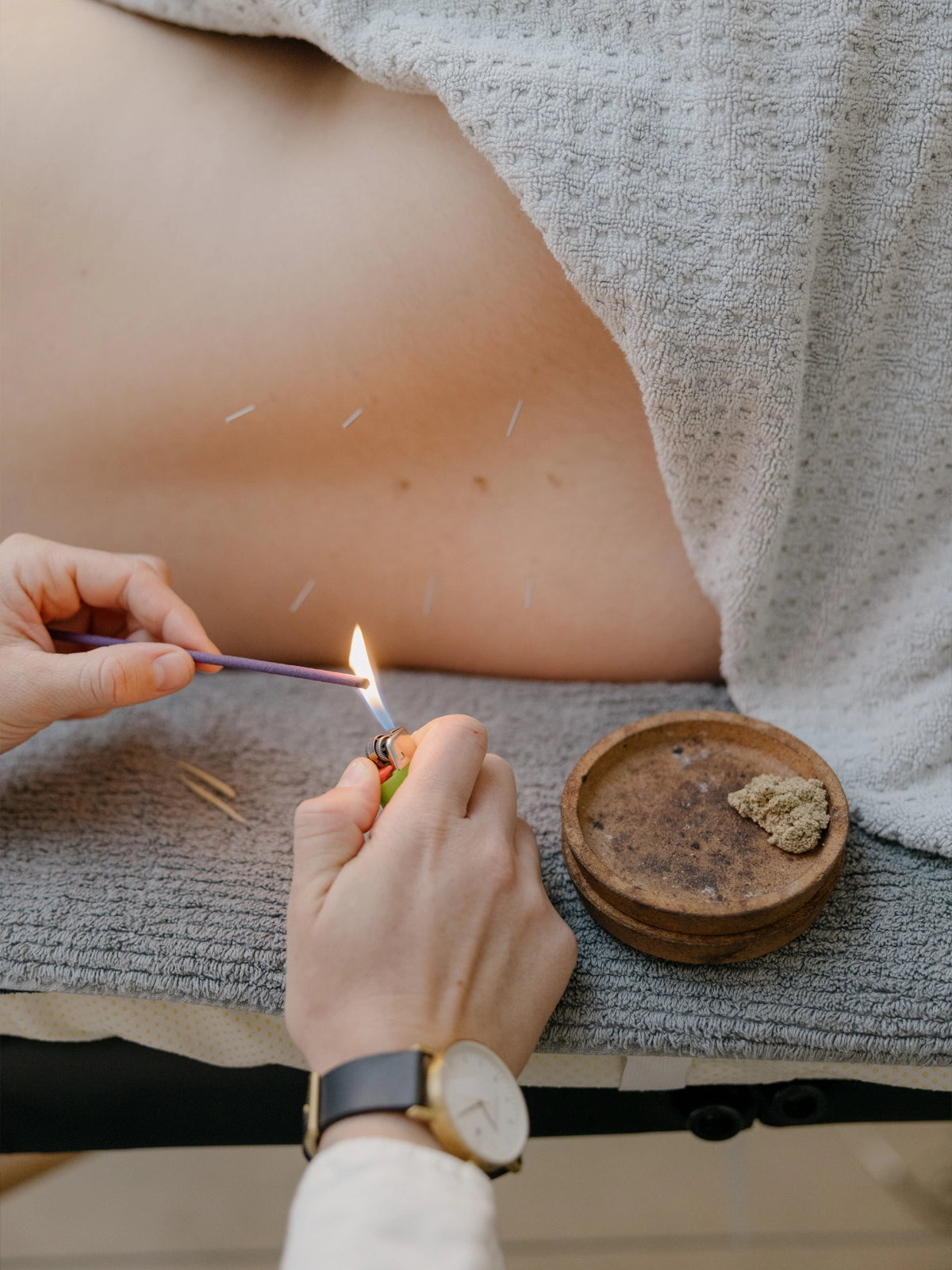 Moxibustion is often recommended in acupuncture texts throughout breech presentations. We implement a Traditional Chinese Medicine technique called Moxibustion, traditional Chinese heat therapy usually in the form of the herb mugwort compressed into a cigar like moxa stick. The precise mechanism of how Moxibustion may effect a baby’s position remains unknown but moxa has been shown to emit long-wavelength infrared radiation (1) and it has been suggested that stimulation of acupuncture point BL 67 may stimulate the production of maternal hormones (placental oestrogens and prostaglandin), encouraging the lining of the uterus to contract which in turn may stimulate foetal activity (2). We start this gentle technique from 34–36 weeks.
